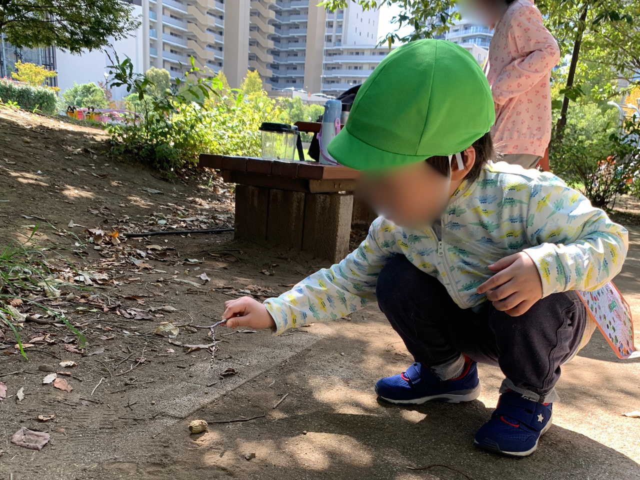 ある日は、ひとりの子が「なんか、うごいた」と、地面を見つめながら言いました。