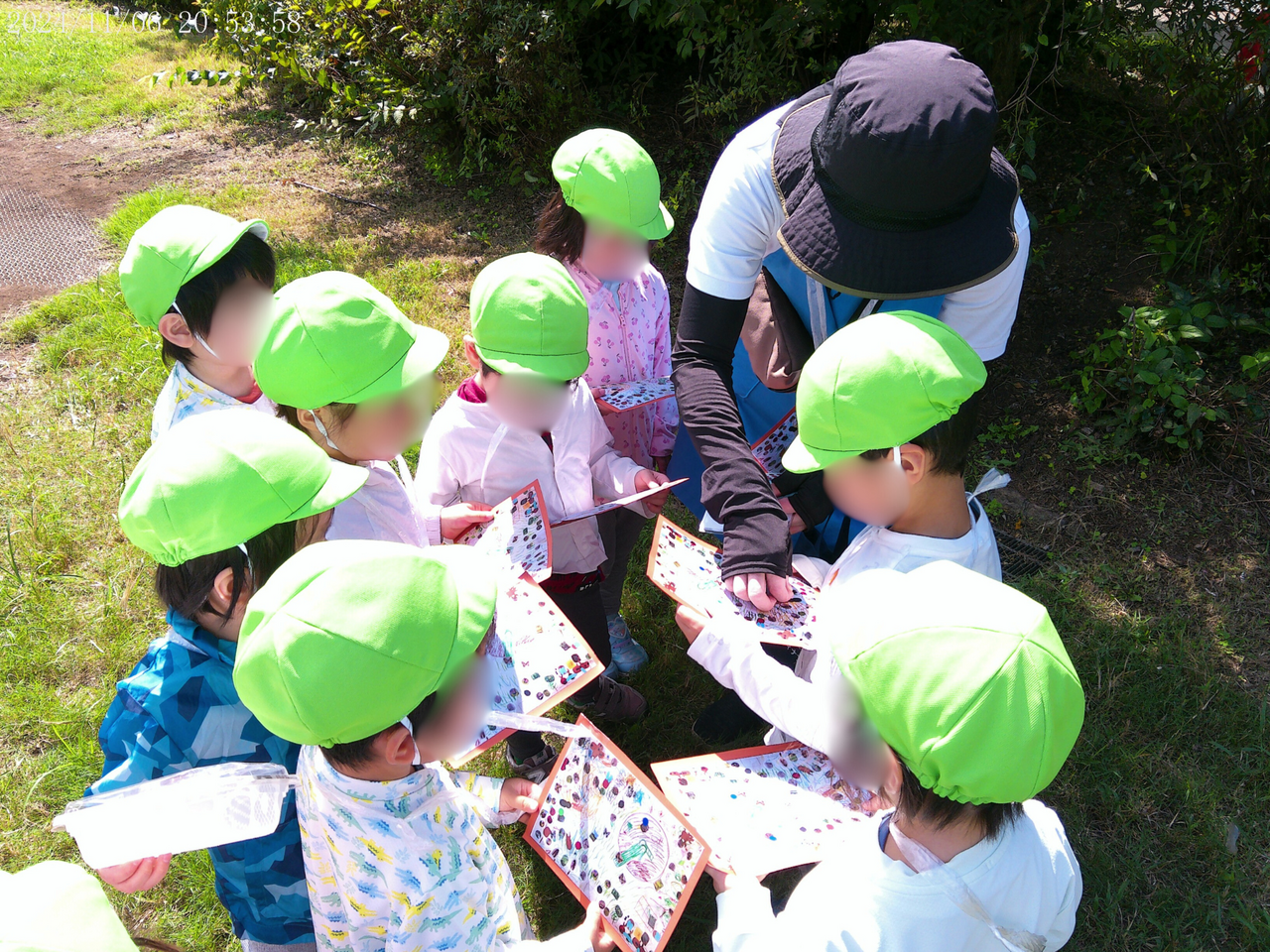 お散歩中に気になったことを、室内でみんなで調べ、さらに屋外での体験と結びつくことで、子どもたちの興味はより深まっていきました。